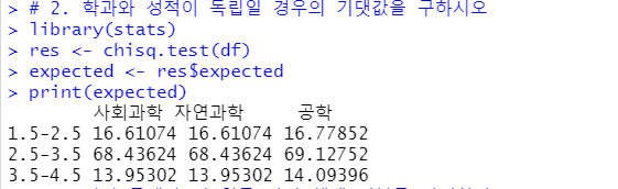 # 2. 학과와 성적이 독립일 경우의 기댓값을 구하시오