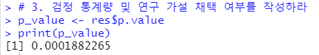 # 3. 검정통계량 및 연구 가설 채택 여부 작성