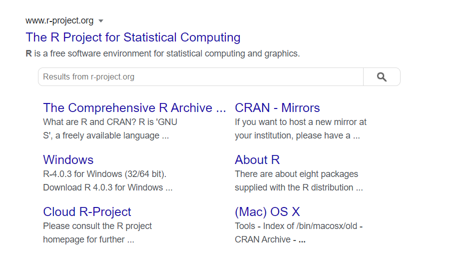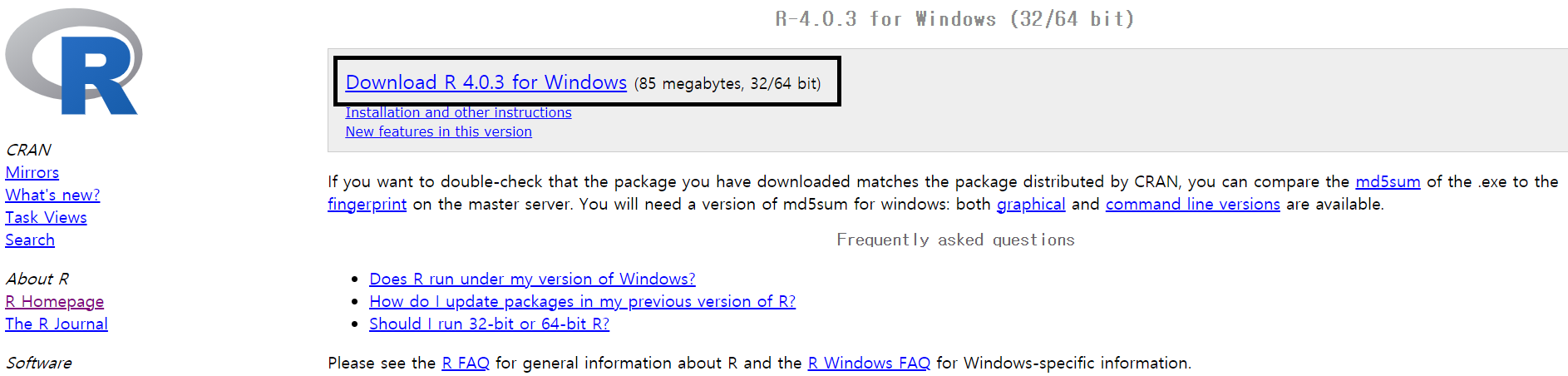 이 경우 광고가 나오는 경우도 있는데, 광고가 아닌 R 홈페이지를 클릭해주어야 한다