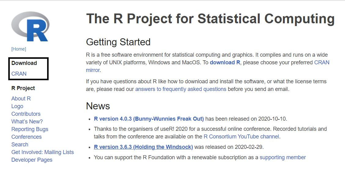 (링크를 타고 들어가도 된다. 링크는 https://www.r-project.org/)